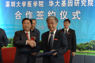 3月10號下午,我校和深圳華大基因研究院的簽約合作儀式在國際會議廳D廳舉行。校領導章必功、邢鋒、陳思平與中科院院士楊煥明、華大基因研究院院長汪建等出席簽約暨揭牌儀式,參加儀式的還有校相關部門負責人及部分研究生。 儀式由副校長陳思平主持,他指出,此次合作雙方本著“發揮優勢、資源共享、互利互惠”的原則,整合雙方資源、加強雙方合作,共同成立“深圳大學醫學院華大基因研究院”,在教學、科研、人才...