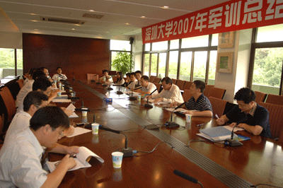 10月11日下午,深圳大學2007年軍訓總結大會在辦公樓201會議室召開。校黨委書記江潭瑜、副校長邢鋒參加了會議。