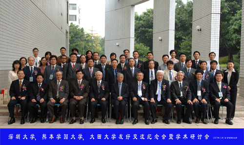章必功校長(zhǎng)致辭,對(duì)前來(lái)深圳大學(xué)的客人表示熱烈歡迎與感謝。他引用中國(guó)大教育家孔子“三人行,必有我?guī)煛钡挠?xùn)誡,對(duì)坂本正關(guān)于大學(xué)價(jià)值表現(xiàn)在學(xué)生成就感與滿意度上及南向豪關(guān)于大學(xué)管理低效率等觀點(diǎn)深有同感。章必功介紹了深圳大學(xué)的發(fā)展歷史及現(xiàn)狀。他說(shuō),深圳大學(xué)下一個(gè)目標(biāo)是快速提高國(guó)際化程度,包括堅(jiān)持思想開(kāi)放,師生自由,平等對(duì)話,學(xué)術(shù)主導(dǎo);在國(guó)際上不斷開(kāi)展教育合作,與全球50多所大學(xué)存在合作關(guān)系;堅(jiān)持制度借鑒與創(chuàng)新,學(xué)習(xí)外國(guó)先進(jìn)管理理念,倡導(dǎo)建立“現(xiàn)代大學(xué)”新制度;堅(jiān)持與外國(guó)實(shí)行學(xué)術(shù)、課題合作;將師資建設(shè)擴(kuò)展到全球,保證引進(jìn)國(guó)際高端人才;大力發(fā)展研究生教育,讓世界學(xué)生走進(jìn)來(lái)、本校學(xué)生走出去;倡導(dǎo)建立管理高效運(yùn)行機(jī)制,立志將深圳大學(xué)辦成國(guó)際型大學(xué)。他希望深圳大學(xué)能與熊本學(xué)園大學(xué)、大田大學(xué)共同達(dá)到教育目標(biāo)。
