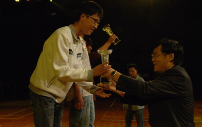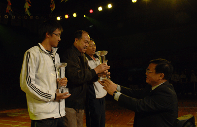 裁判長宣讀了本次運動會比賽成績。校領導章必功、阮雙琛、陳思平分別為綜合運動會獲獎團體、學生田徑獲獎團體和教工田徑獲獎團體頒發獎杯。