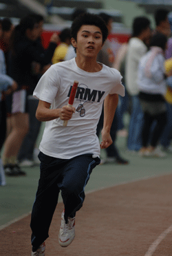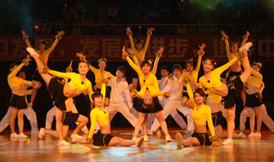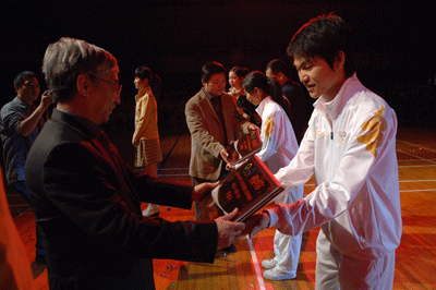 奏唱國歌后,充滿青春活力的啦啦隊表演和交誼舞表演使現場師生陶醉其中,掌聲一次一次隨著音樂節拍響起。章必功校長和可口可樂公司負責人為我校北京2008火炬護跑手頒發獎牌。