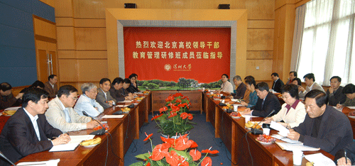 12月24日上午,北京高校領導干部教育管理研修班38名成員蒞臨我校,并與我校領導座談。座談會在國際會議廳D廳舉行。校領導章必功、陶士平、陳思平以及部分部處負責人參加了座談會。