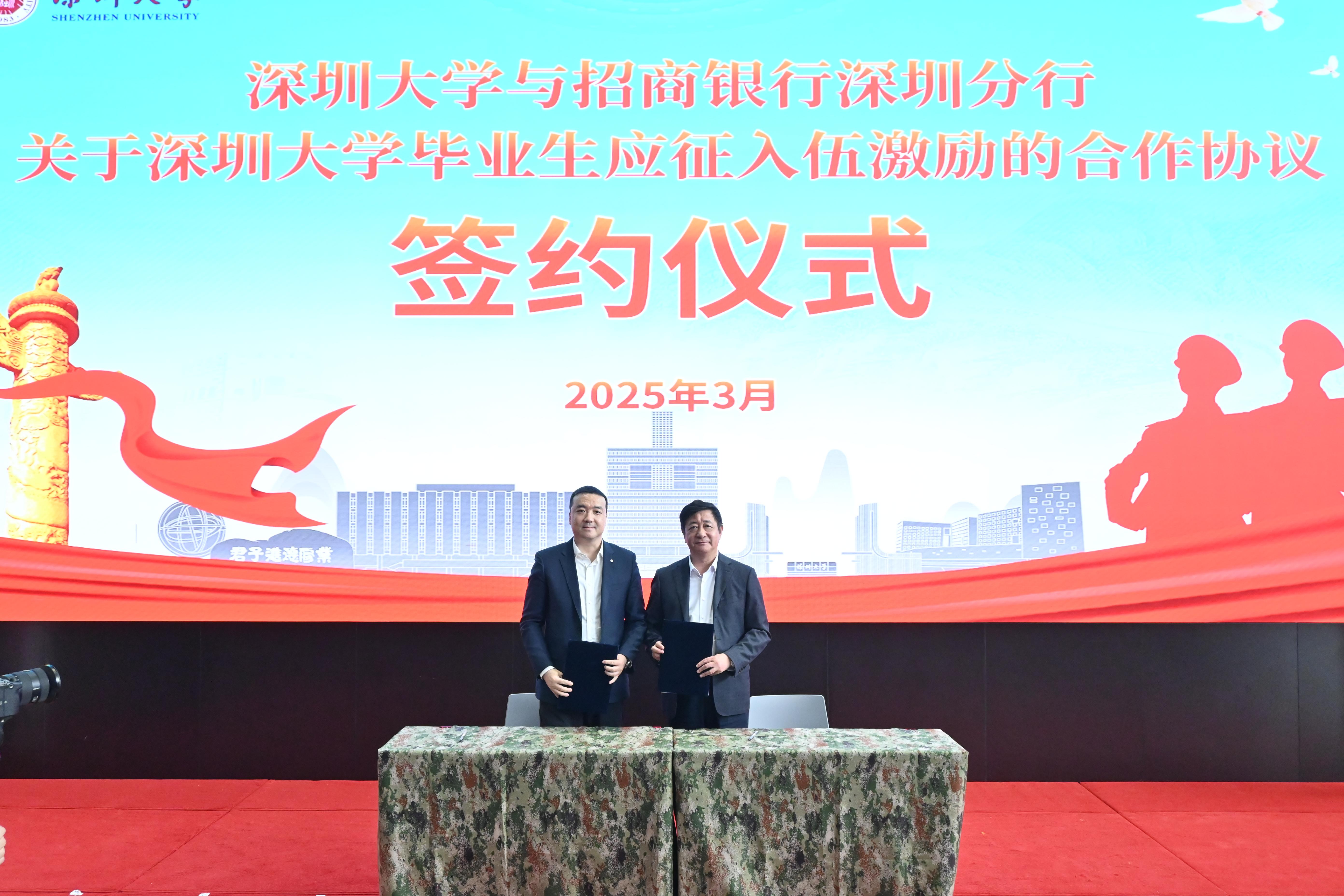 為深入貫徹習近平強軍思想,進一步激發廣大荔園學子投身國防事業的熱情,3月13日下午,深圳大學在粵海校區校友廣場二樓多功能廳舉行2025年春季新兵入伍歡送儀式,并與招商銀行正式簽署《畢業生應征入伍激勵合作協議》,為符合條件的入伍學生保留錄用資格。