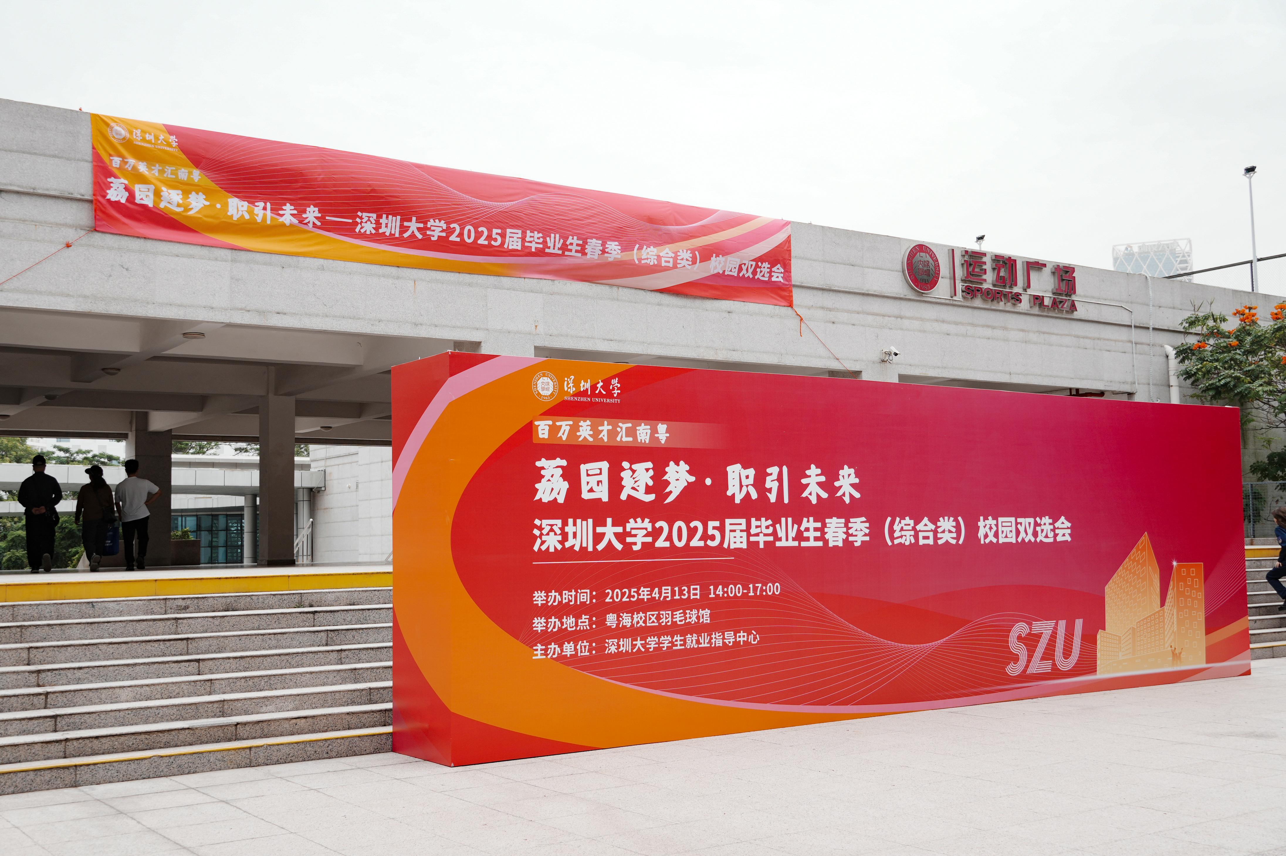 4月13日下午,由深圳大學學生就業指導中心主辦的“荔園逐夢·職引未來”2025屆畢業生春季(綜合類)校園雙選會在粵海校區羽毛球館舉行。深圳大學校長毛軍發、副校長汪永成以及學生部、各學院(部)負責人到招聘會與招聘企業溝通交流,為求職畢業生加油打氣。雙選會共接收簡歷5000余份,初步通過人數1500余人。