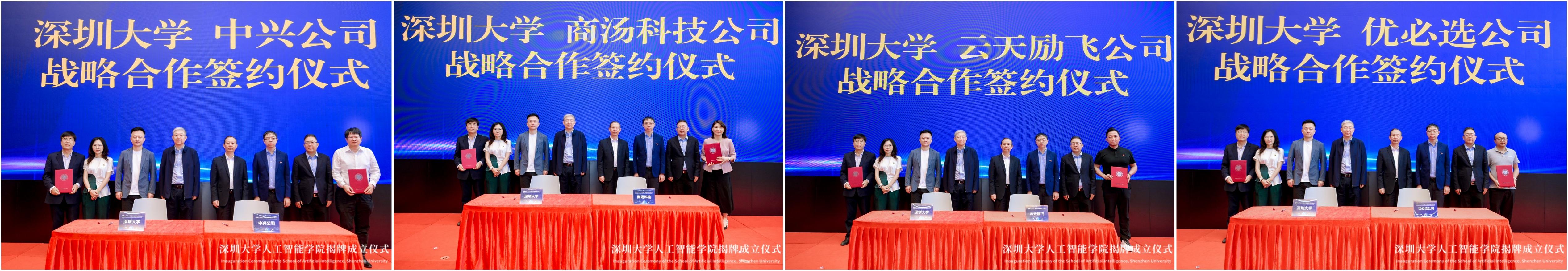 為進一步深化產(chǎn)學研合作,推動人工智能技術(shù)的應用與產(chǎn)業(yè)轉(zhuǎn)化,深圳大學人工智能學院分別與羅湖區(qū)人民政府,騰訊、華為等多家知名企業(yè)與機構(gòu)簽署了戰(zhàn)略合作協(xié)議,通過建立長期穩(wěn)定的合作關(guān)系,整合各方資源,共同開展人工智能領(lǐng)域的技術(shù)研發(fā)、人才培養(yǎng)和產(chǎn)業(yè)應用,構(gòu)建從政策引領(lǐng)到產(chǎn)業(yè)應用的全鏈條合作模式。