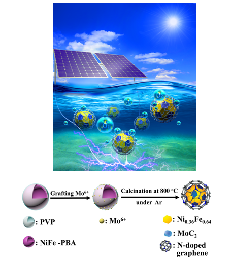 化學與環境工程學院何傳新課題組在電催化水分解方面取得重要進展, 研究成果以“Crafting MoC2-doped Bimetallic Alloy Nanoparticles Encapsulated within N-doped Graphene as Roust Bifunctional Electrocatalysts for Overall Water Splitting”為題發表在《Nano Energy》(JCR 一區,影響因子12.343)上。該研究通過聚乙烯吡咯烷酮與二元NiFe普魯士藍復合,一步法制備出石墨烯封裝的合金納米顆粒NG-NiFe@ MoC2,將其應用于電催化析氫或析氧反應中,表現出優異的活性和穩定性。此外,NG-NiFe@ MoC2納米雜化材料可以同時作為陽極和陰極電催化劑用于完全水分解,在較低的電壓下(1.53 V)實現10mA cm-2的電流密度和較好的耐久性(10 h),優于貴金屬Pt/C//RuO2所構建的電解池,有望應用于替代貴金屬催化劑以實現高效且低成本的完全水分解。課題組胡琪博士是論文的第一作者,深圳大學何傳新副教授和佐治亞理工學院的林志群教授為論文的共同通訊作者,深圳大學為第一完成單位和通訊單位。