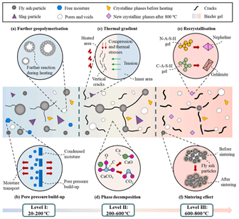 圖1. 堿激發(fā)材料在高溫作用下的微觀劣化機(jī)理