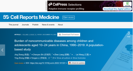 近日,深圳大學醫學部公共衛生學院張晶助理教授在Cell子刊《Cell Reports Medicine》(中科院1區,IF=14.3)上發表了題為《Burden of noncommunicable diseases among children and adolescents aged 10–24 years in China, 1990–2019: A population-based study》的研究論文。醫學部公共衛生學院張晶助理教授、史琛彥助理教授和生物醫學工程學院梁臻副教授為共同第一作者,深圳大學為第一完成單位。該文章上線后即成為Cell Press主頁精選(Featured content)。