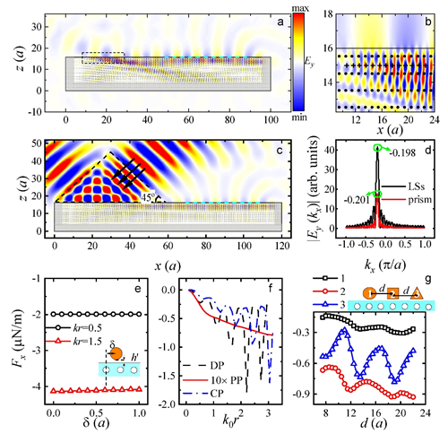 圖1.基于表面牽引光束的實際結構設計和作用在不同微粒和團簇上的光力