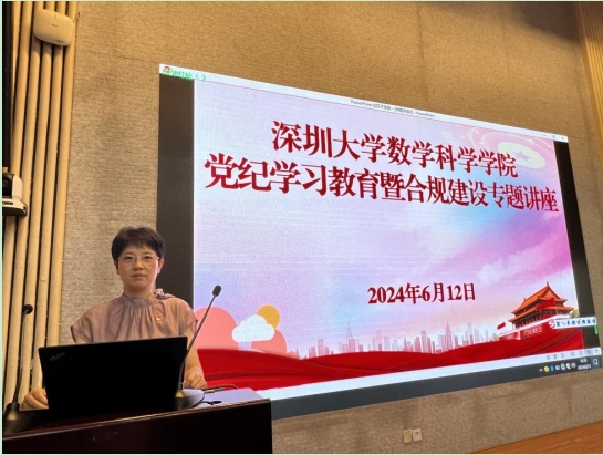 為深入學(xué)習(xí)貫徹習(xí)近平總書記關(guān)于黨紀(jì)學(xué)習(xí)教育的重要講話和指示精神,貫徹落實(shí)學(xué)校關(guān)于黨紀(jì)學(xué)習(xí)教育和合規(guī)建設(shè)的戰(zhàn)略部署,6月12日下午,數(shù)學(xué)科學(xué)學(xué)院在匯星樓三號報告廳舉辦了黨紀(jì)學(xué)習(xí)教育暨合規(guī)建設(shè)專題講座,本次講座邀請到深圳大學(xué)法學(xué)院宋旭光副院長主講。數(shù)學(xué)科學(xué)學(xué)院領(lǐng)導(dǎo)班子、黨委委員、紀(jì)委委員、系主任副主任、黨支部書記、院辦老師及學(xué)生黨員共140余人參加。講座由數(shù)學(xué)科學(xué)學(xué)院黨委書記王瑜主持。
